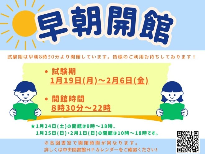 2026.1.16試験期は早朝開館しています(1/19~2/6)