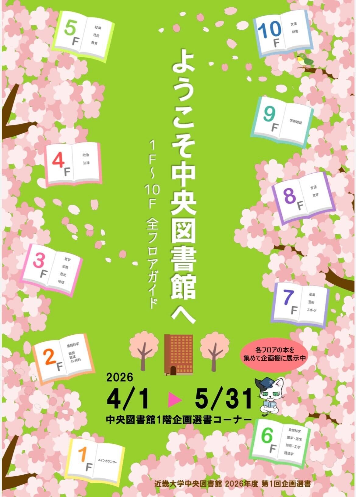 【4月5月の図書館企画選書】「ようこそ中央図書館へ ~1Fから10F 全フロアガイド~」をテーマに開催(5月31日まで)