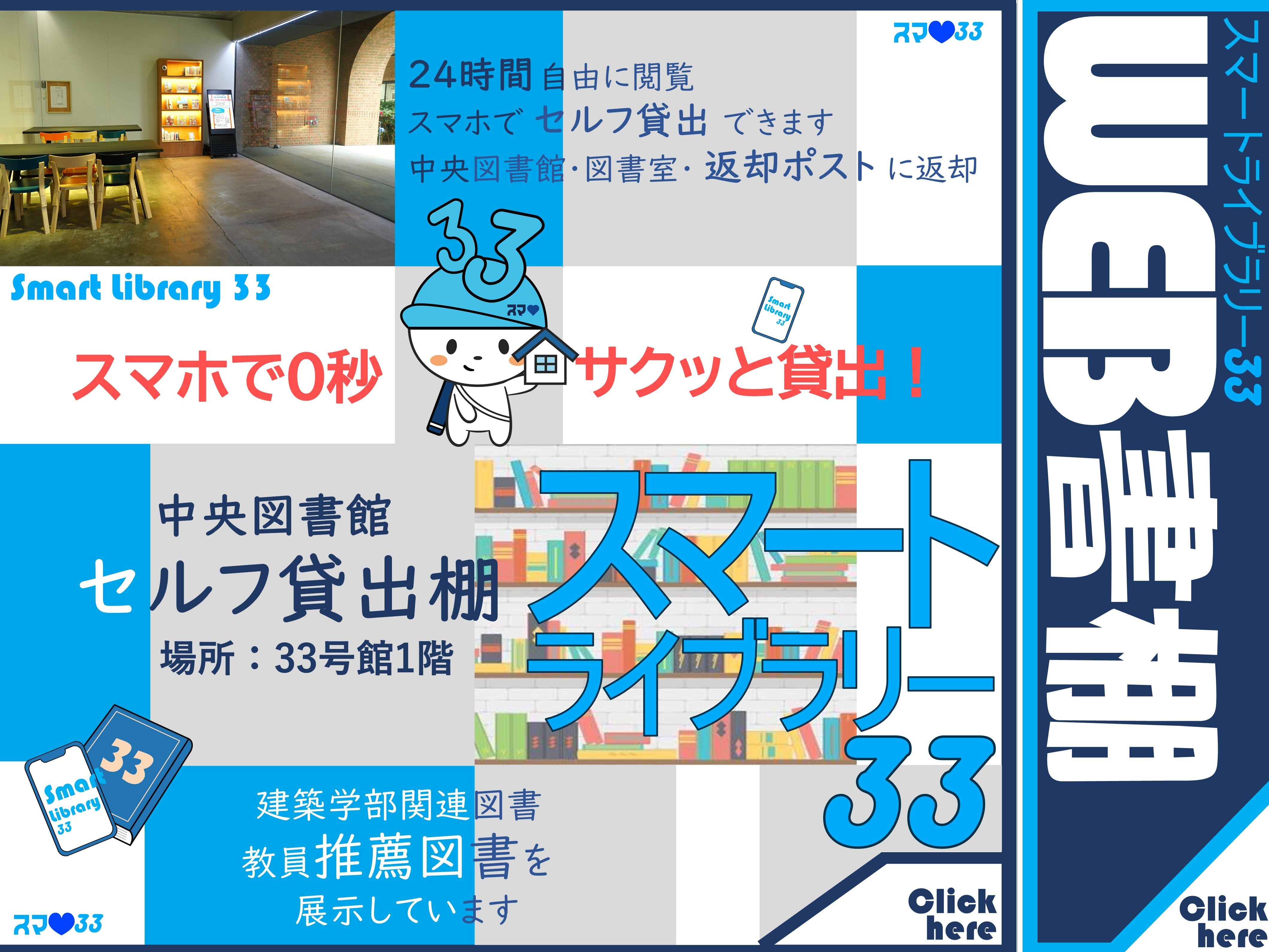 なお、スマートライブラリー33に並んでいる本は、中央図書館ホームページ および 表示ポスターの「WEB書棚」からご覧いただけます。
